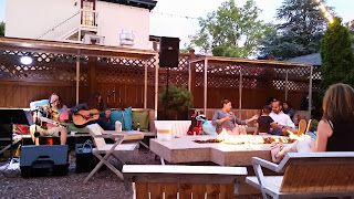 The most pleasant surprise came after dinner when we wandered into the Logan Inn. They have an outdoor seating area with long firepits. Live music was on -- a duo playing '70s tunes. Then the waiter brought the makings for smores. Long sticks, marshmallows, biscuits, and chocolates. How cool was that. Our last night in the states proved very pleasant indeed.